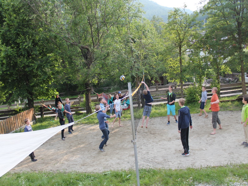 Uns geht es richtig gut hier: Die Sonne scheint (immer mal wieder), die Gruppe ist klasse, die Stimmung ist super! Volleyball und Fußball laufen von alleine, das Programm macht viel Spaß, die Zelte und die Jurte stehen schon (fehlt nur noch die Innenausstattung wie der Holzbalken-Fußboden) und das Größte ist das Essen! Es gab schon Spaghettis, Tortellinis, feinen Braten, Kaiserschmarrn -- soviel wir brauchten! Jetzt kommt das Abendprogramm. KFS -- das ist: Klasse -- Fantastisch -- Spektakulär!