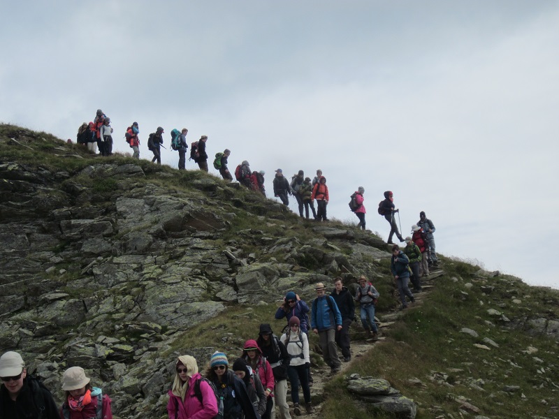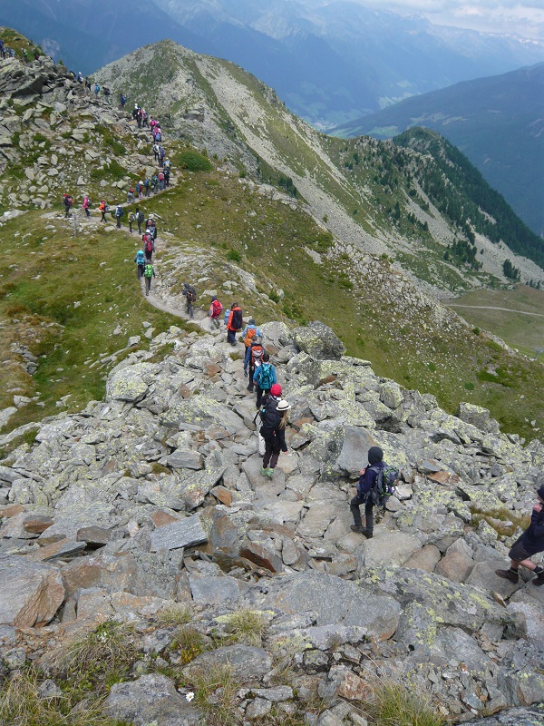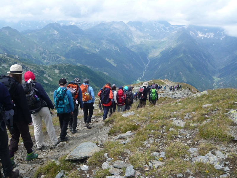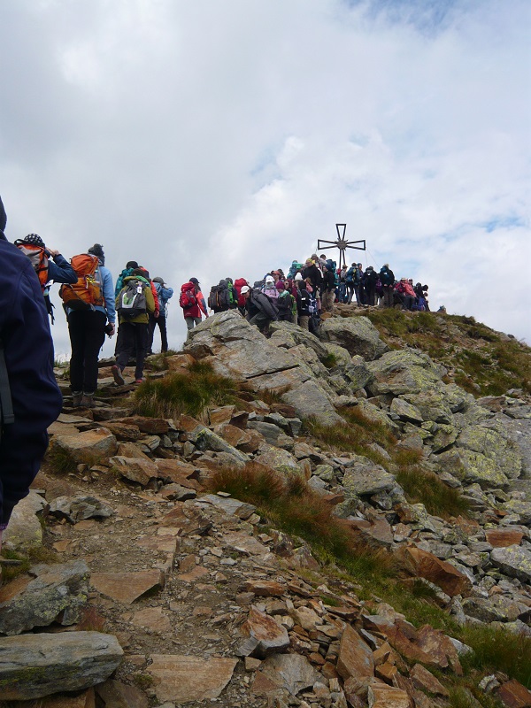 Morgens mit der Seilbahn zunächst 1000 m hoch, um dann in einer langen Schlange zum ersten Gipfel, dem Sonnenklarnock aufzusteigen. Von dort ging es nach der Mittagsjurte weiter auf den höchsten Gipfel, den Speikboden. Hier trafen wir auf die Gruppe Wolfenbüttel-Steterburg – ja, wir sind viele hier.