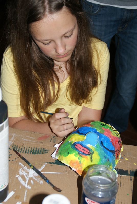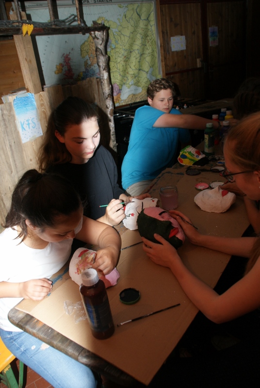 Die Projektgruppen arbeiten jeweils mit Masken und Theater, mit Spiegeln, Holz und Kunst, Trommeln und Rhythmus, oder Fotos. Es ist ein konzentriertes Arbeiten, was außerdem auch viel Spaß macht.