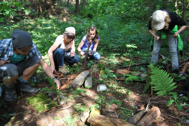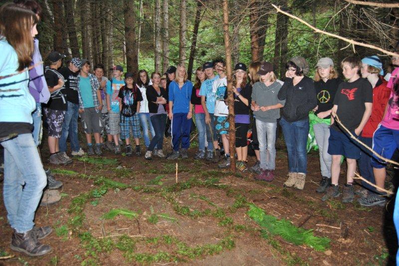 Nach der Bibelarbeit am Morgen ging es heute Nachmittag in den Wald. Aufgabe war es, aus den vorhandenen Materialien gemeinsam eine Stadt zu bauen, in der alle gut und gern leben könnten. Ganz selbstverständlich, dass da neben großen Plätzen zur bewgegnung, Badeseen und Konzerthallen auch eine Kirche nicht fehlen durfte.
