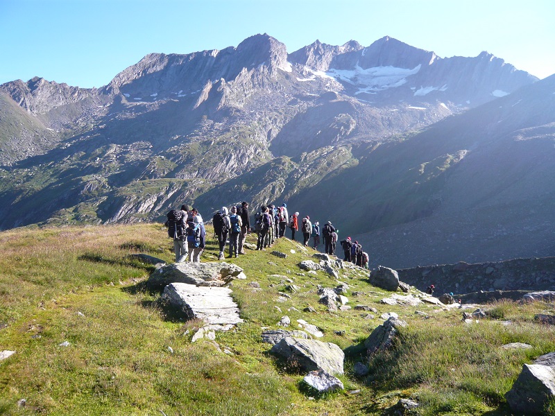 Der Ahrner Kopf (3087m) – unser Dreitausender-Ziel – liegt noch in Wolken, als frühmorgens eine große Gruppe sich aufmacht, den Gipfel zu erklimmen.