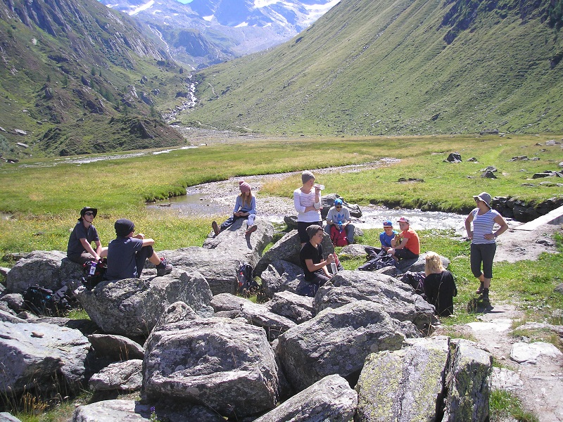 Die anderen stiegen durch das Windtal ab und genossen den Tag am idyllischen Bergbach mit Blick auf die Gipfel.
