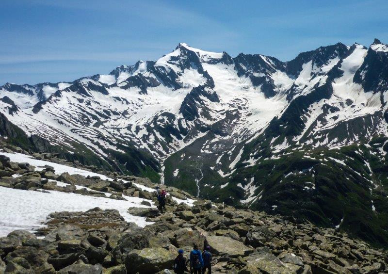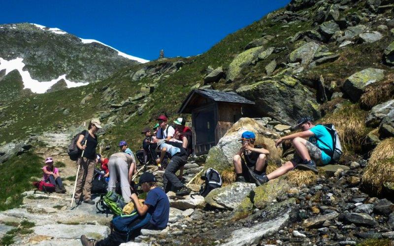 Früh morgens, am Freitag, ging es los zum letzten Dorf im Tal, Kasern. Von dort aus wanderten wir 1000 Höhenmeter hoch zur alten Zollkaserne, die uns jetzt schon einen atemberaubenden Blick auf die Gletscherlandschaft Südtirols bescherte. Danach ging es auf etwa derselben Höhe in Richtung Birnlücke, über den zum größten Teil verschneiten Krimmlertauernweg. Wir alle mussten uns anstrengen, um diese Herausforderung zu meistern. Schließlich teilten wir unsere Gruppe, die einen gingen direkt zur Birnlückenhütte und die anderen weiter zum Sattel der Birnlücke. Dort standen sie auf der Italienisch-Österreichischen Grenze und konnten das ganze Ahrntal überblicken. Zurück auf der Hütte gab es für alle ein Eis und die Nachricht der Hüttenwirtin, dass wir die ersten dieses Jahr waren, die diese Route zur Birnlücke gegangen sind. Flöthe, Ralf Ohainski, 13.07.2013