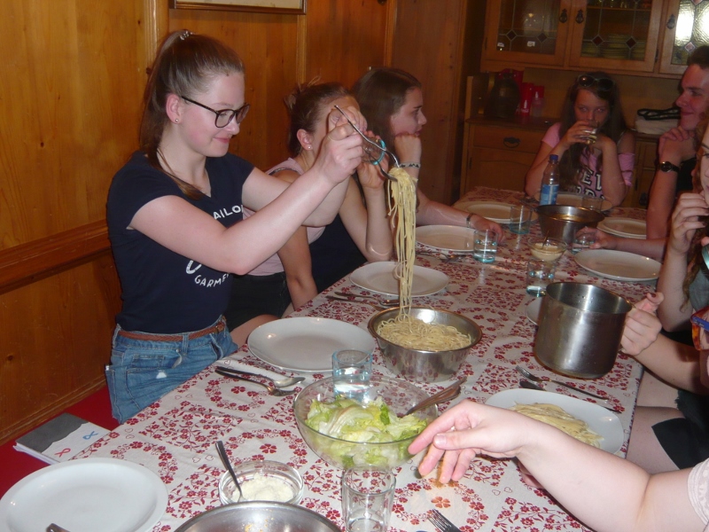 Sommerferien – strahlende Berge, blauer Himmel, heißer Sommer und gute Laune miteinander! Dazu frisches Quellwasser, Italienische Spaghetti und Tiroler Kaiserschmarrn mit frischem Apfelmus. So fängt unser KFS in Luttach an. Hand in Hand und mit Augenmaß haben wir alles Gepäck gewuchtet und sind hier heil und guter Dinge gelandet. Beim bunten Abend gab es viel zu lachen. Und anschließend in der Abendjurte bei Kerzenschein haben wir gesungen, gedankt und an die Familien zuhause gedacht. Nachts war es leise am Bruggerhof. So sind wir gut gestärkt und frisch ausgeschlafen heute in den neuen Tag gestartet. Jetzt geht es an die Zelte!